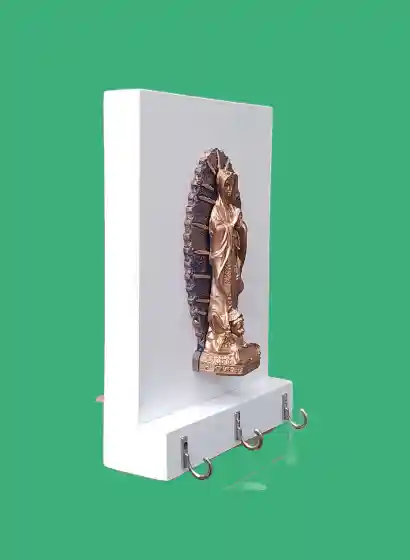 En resumen, este producto fusiona la tradición y la modernidad, ofreciendo una representación única de la Virgen de Guadalupe en madera blanca con ganchos y un acabado en laca brillante. Una adición encantadora y espiritual para tu hogar que reflejará tu gusto por la artesanía y la devoción.